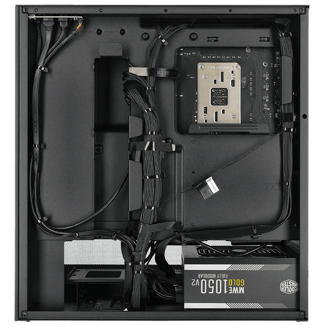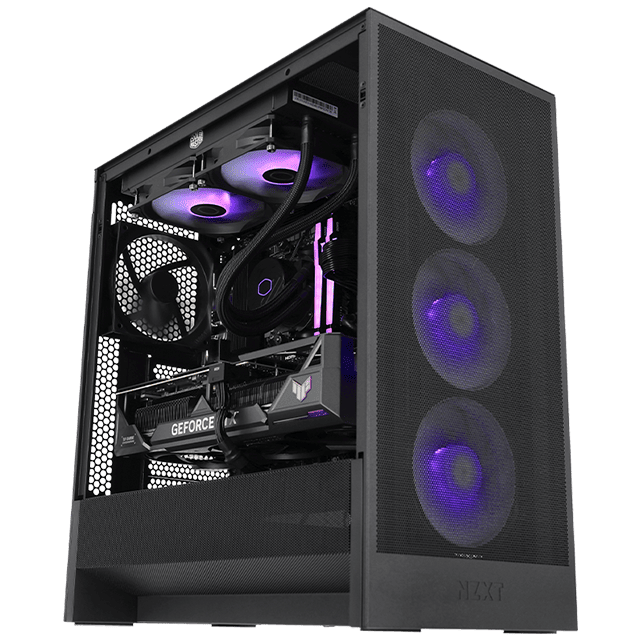Le tout, intégré dans le boitier NZXT H5, à la fois sobre et élégant et optimisé pour le refroidissement, soutenu par une alimentation 1050W CoolerMaster 80+ Gold assurant une stabilité et une durabilité même sous forte charge.