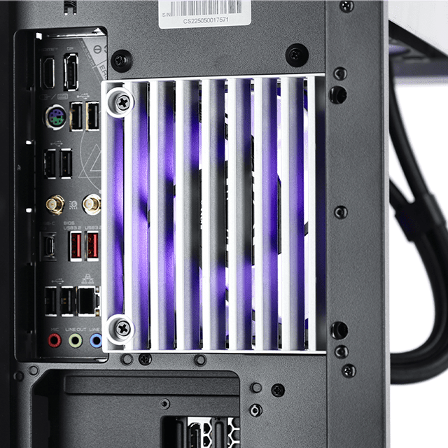 Le stockage est assuré par un SSD NVMe Crucial E100 de 1 To, garantissant des démarrages rapides, des chargements courts et un accès immédiat aux jeux et applications. Résultat : un système toujours fluide, rapide et prêt à encaisser les charges les plus importantes.