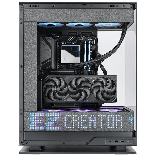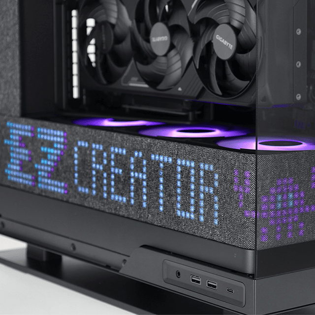 Une configuration puissante, élégante et taillée pour le gaming moderne et futur-proof, accompagnée de son écran matriciel LED entièrement personnalisable, dissimulé derrière un intérieur en tissu pour un affichage épuré et sans couture.