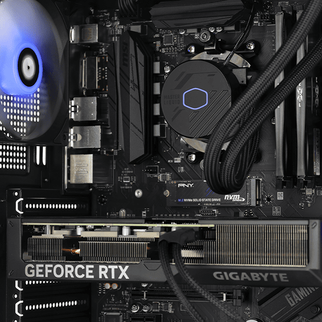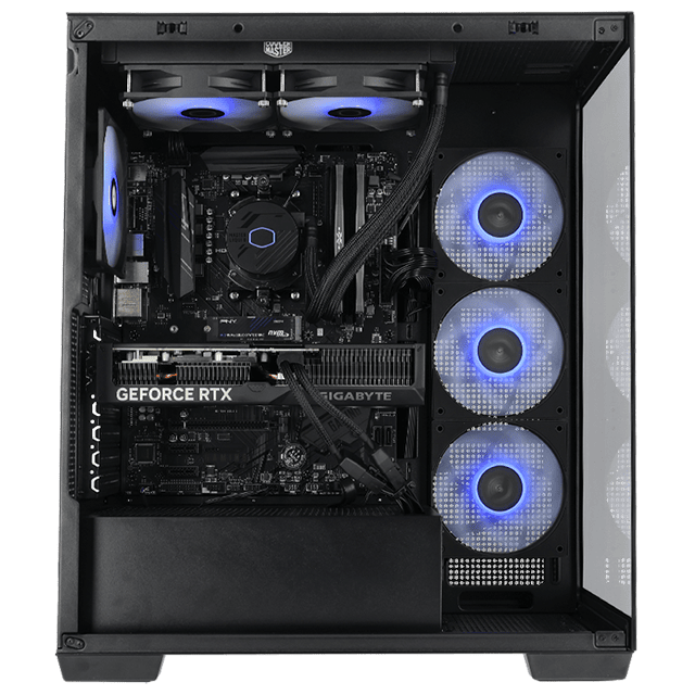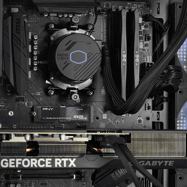 La mémoire DDR4 à 3600 MHz garantit une bonne réactivité, tandis que le SSD NVMe PCIe Gen4 assure des temps de chargement rapides et un système toujours fluide. Le watercooling Cooler Master MasterLiquid 240L maintient des températures parfaitement maîtrisées, même en pleine charge. Une machine puissante, équilibrée et taillée pour le gaming moderne.