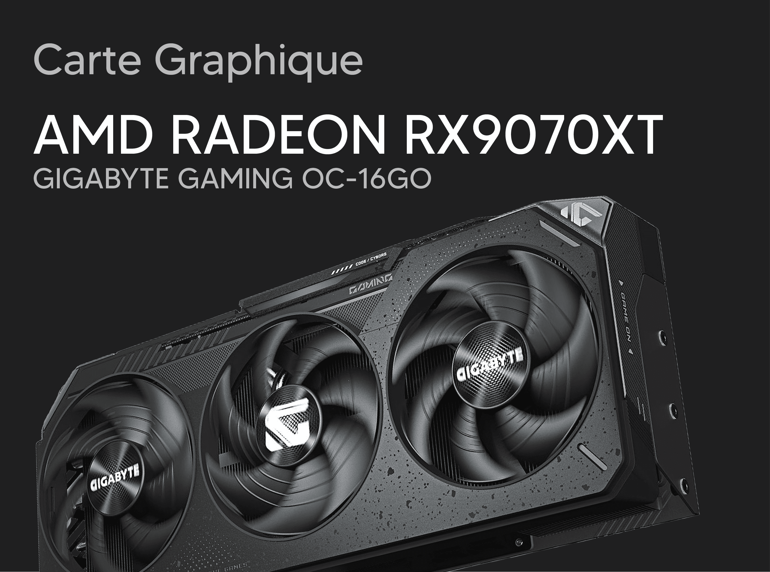 AMD Ryzen 7 7800X3D, Gigabyte RX 9070 XT, Corsair 32 Go DDR5 6000 MHz, Gigabyte B650 Eagle AX, SSD NVMe Crucial 1 To, watercooling Deepcool LD360, alimentation Cooler Master 750 W 80+ Bronze, boîtier Corsair 3500X, Windows 11 (version d’essai).