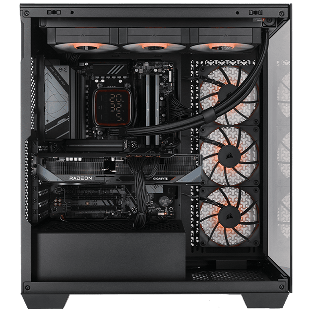 Le watercooling Deepcool LD360 maintient des températures parfaitement maîtrisées, même lors de longues sessions intensives, tandis que l’alimentation Cooler Master 750 W assure une stabilité et une fiabilité constantes. L’ensemble est intégré dans le Corsair 3500X, un boîtier moderne offrant un design soigné et un airflow optimisé.