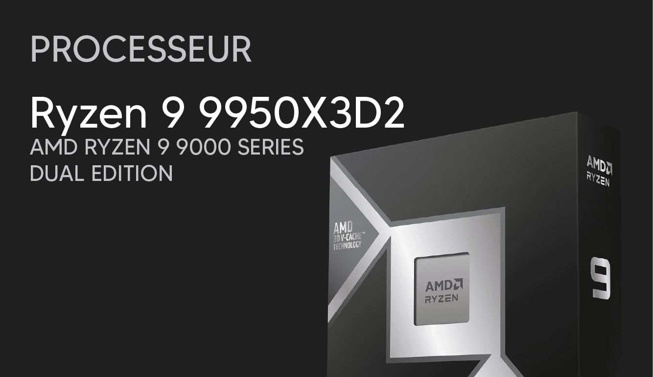 Configuration : AMD Ryzen 9 9950X3D2, RTX 5080 Palit RGB (modèle en fonction de l’arrivage), Kingston NVMe 2To (modèle en fonction de l’arrivage), Corsair Vengeance 32Go DDR5 6000MHz (2x16Go), MSI MAG Tomahawk X870 WiFi, Alimentation Corsair RM1000e 1000W, Watercooling NZXT Kraken 360, Boîtier NZXT H9, Windows 11 (version d’essai).